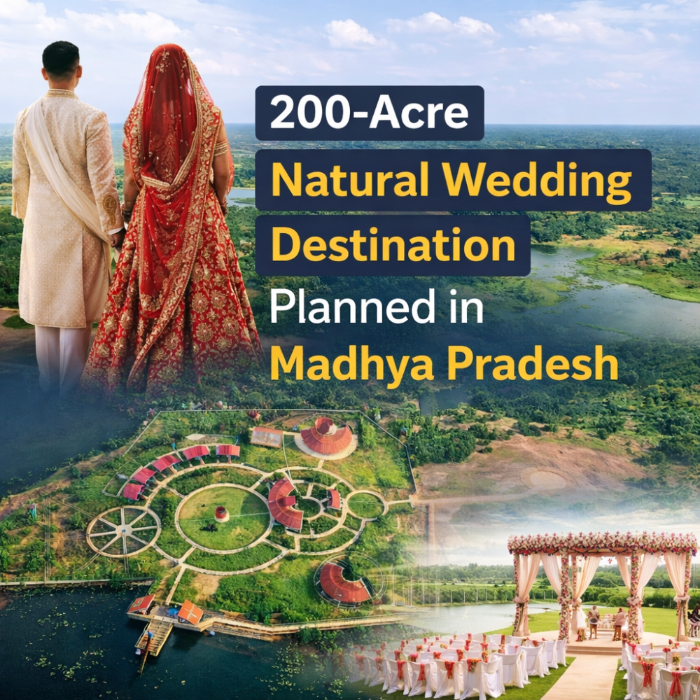 The planned 200-acre wedding destination in Madhya Pradesh will offer a fresh alternative. Surrounded by greenery, water bodies, and open spaces, the venue will provide a serene and picturesque setting for wedding ceremonies. This project reflects a growing trend where couples prefer eco-conscious celebrations without compromising on elegance and comfort.