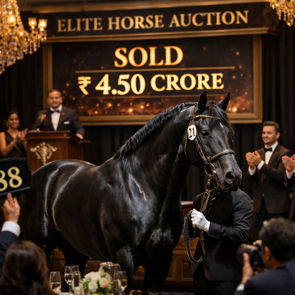 In a remarkable moment for India’s equestrian world, a black horse born and raised in Surat has been sold for an astonishing ₹4.50 crore at a prestigious auction, drawing nationwide attention. The high-value sale not only highlights the exceptional quality of the horse but also underlines the rising prominence of India’s premium horse breeding and auction ecosystem. The event became a talking point among breeders, buyers, and enthusiasts, marking a significant milestone for Surat and Gujarat in the field of elite horse trading.