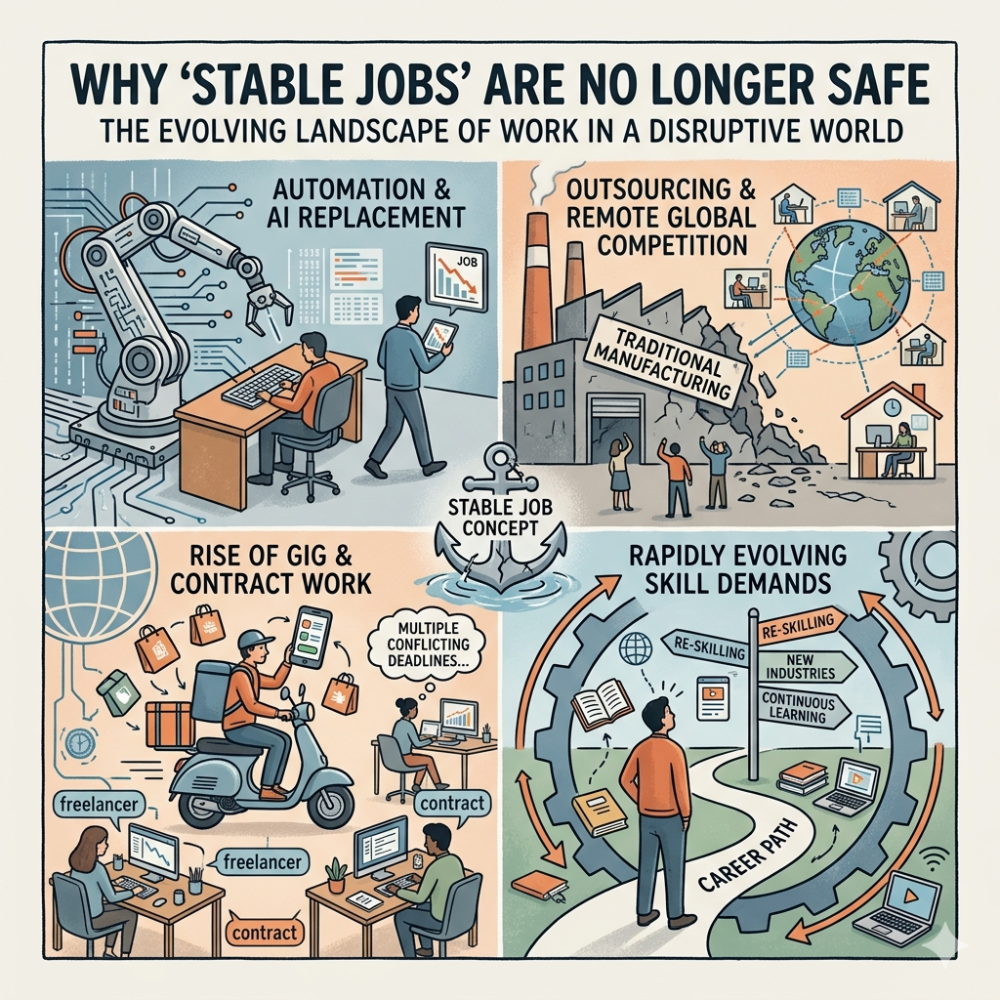 In the present-day highly dynamic environment, the concept of “stable employment” has lost its viability to a significant degree. In light of layoffs in traditionally stable fields, automation, and changing priorities of employers, security in one’s workplace has acquired an entirely different connotation altogether. Now, more than ever before, people must pay attention to their adaptability and skills rather than depend only on a company name or position. It should be stressed that security is not about where one works, but how ready one is for changes.
